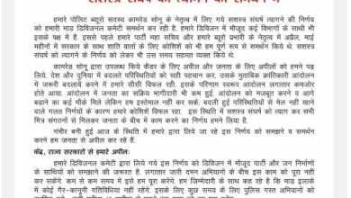 माओवादी की माड़ डिवीजन कमेटी ने भी सोनू उर्फ अभय के आत्मसमर्पण फैसले का किया समर्थन।