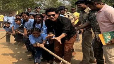 दंतेवाड़ा के छिंदनार पहुंचे सचिन तेंदुलकर: बच्चों के साथ खेली रस्साकशी