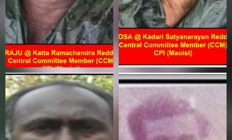 नारायणपुर। अबूझमाड़ के घने जंगलों में सोमवार को हुई मुठभेड़ में सुरक्षा बलों ने माओवादी संगठन को करारा झटका दिया। इस मुठभेड़ में सीपीआई (माओवादी) केंद्रीय समिति के दो वरिष्ठ सदस्य – राजू दादा @ कट्टा रामचंद्र रेड्डी @ विकल्प और कोसा दादा @ कादरी सत्यनारायण रेड्डी मारे गए। दोनों पर छत्तीसगढ़ सरकार ने 40-40 लाख रुपये का इनाम घोषित कर रखा था।