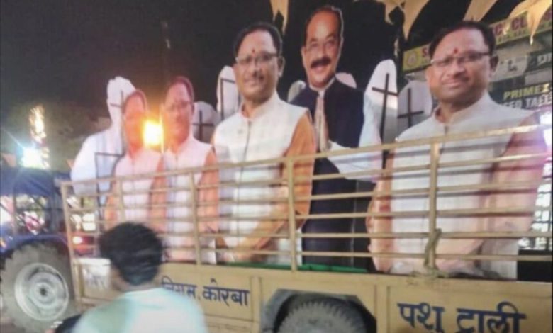 पशु ट्राली में नेताओं के कटआउट ढोने से बढ़ी नाराजगी, 3 अफसरों को जारी किया गया नोटिस