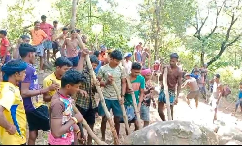 नारायणपुर में शासन–प्रशासन की अनदेखी। ग्रामीणों ने उठाई कुदाली, पहाड़ काट बना डाली सड़क।