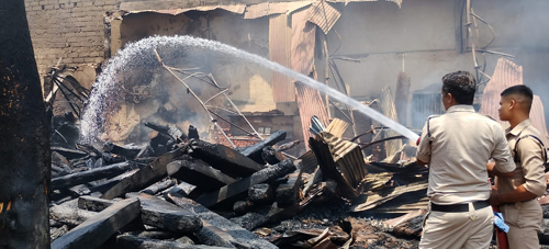 टिंबर मार्केट में लगी भीषण आग, प्लाईवुड सहित लाखों का सामान जलकर खाक