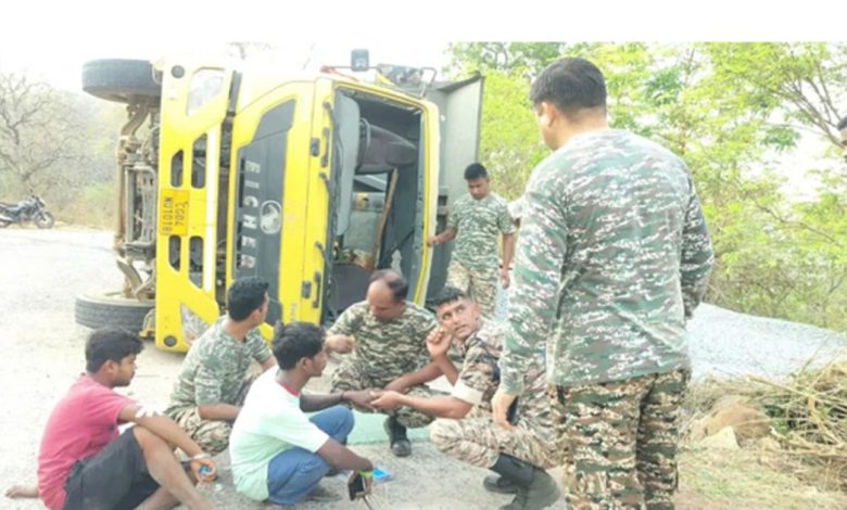जगदलपुर। जिले के ताेंगपाल थाना क्षेत्र अंर्तगत पुसपाल घाट में शुक्रवार काे गिट्टी से भरा तेज रफ्तार हाईवा अनियंत्रित होकर पलट गया । हादसे में हाईवा चालक सहित 3 लोग घायल हुए हैं। पुसपाल घाट में तैनात सीआरपीएफ 188 बटालियन के जवानों ने मौके पर पहुंचकर वाहन में फंसे घायलों को बचाया और अस्पातल रवाना किया। मिली जानकारी के अनुसार दुर्घटना के बाद हाईवा चालक सहित 3 लोग वाहन में ही फंस गए थे। गनीमत रही कि सीआरपीएफ के तैनात सहायक कमांडेंट बन्ना राम वहां मौजूद थे, उन्होंने मारडूम थाने में घटना की सूचना दी, मौके पर जवानों की टीम पहुंची और फंसे हुए घायल हाईवा चालक लक्ष्मण एवं उसकेे साथ ही हाईवा वाहन में सवार योगेंद्र और कार्तिक को बाहर निकाला लिया। उन्हें इलाज के लिए अस्पातल भेज दिया गया है।