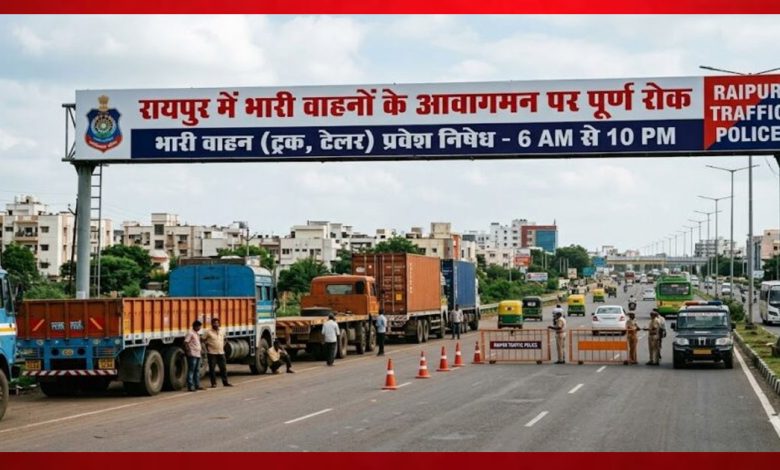 रायपुर।शहर में सुगम यातायात, लोक सुरक्षा एवं आवागमन को व्यवस्थित बनाए रखने के उद्देश्य से पुलिस कमिश्नर संजीव शुक्ला द्वारा मोटरयान अधिनियम 1988 की धारा 115 के तहत रिंग रोड-01 एवं रिंग रोड-02 की सीमा से शहर की ओर आने वाले 19 प्रवेश मार्गों से शहर के भीतर मध्यम एवं भारी मालवाहक वाहनों के प्रवेश पर प्रतिबंध लगाया गया है।