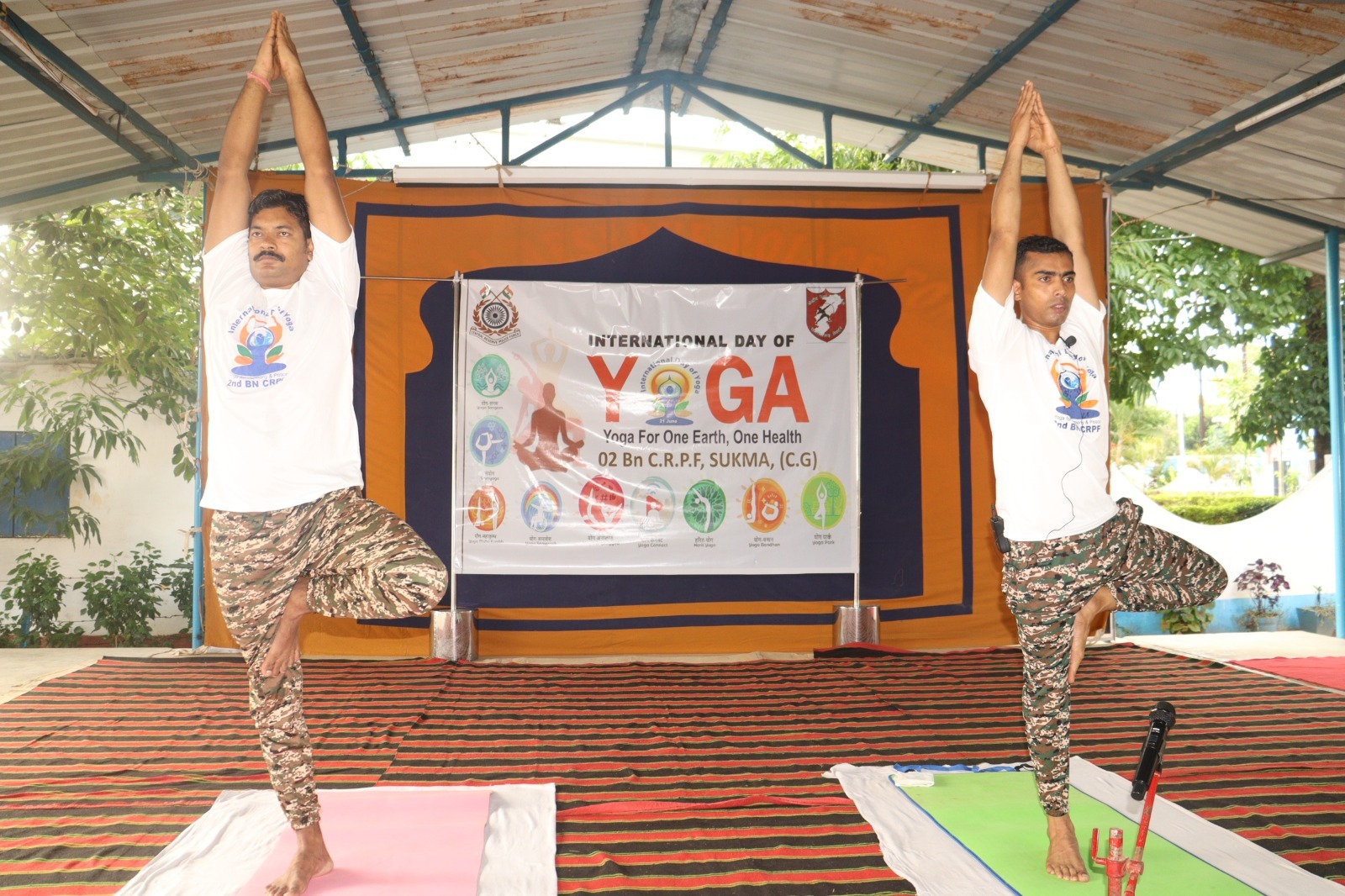 सुकमा। अंतर्राष्ट्रीय योग दिवस के अवसर पर द्वितीय वाहिनी केंद्रीय रिजर्व पुलिस बल (CRPF) द्वारा सुकमा मुख्यालय सहित दुलेर, मुकराज कोंडा, मिनपा एवं रामाराम कैंपों में “योग दिवस” का भव्य आयोजन किया गया। कार्यक्रम का नेतृत्व कमांडेंट रतिकांत बेहरा ने किया।